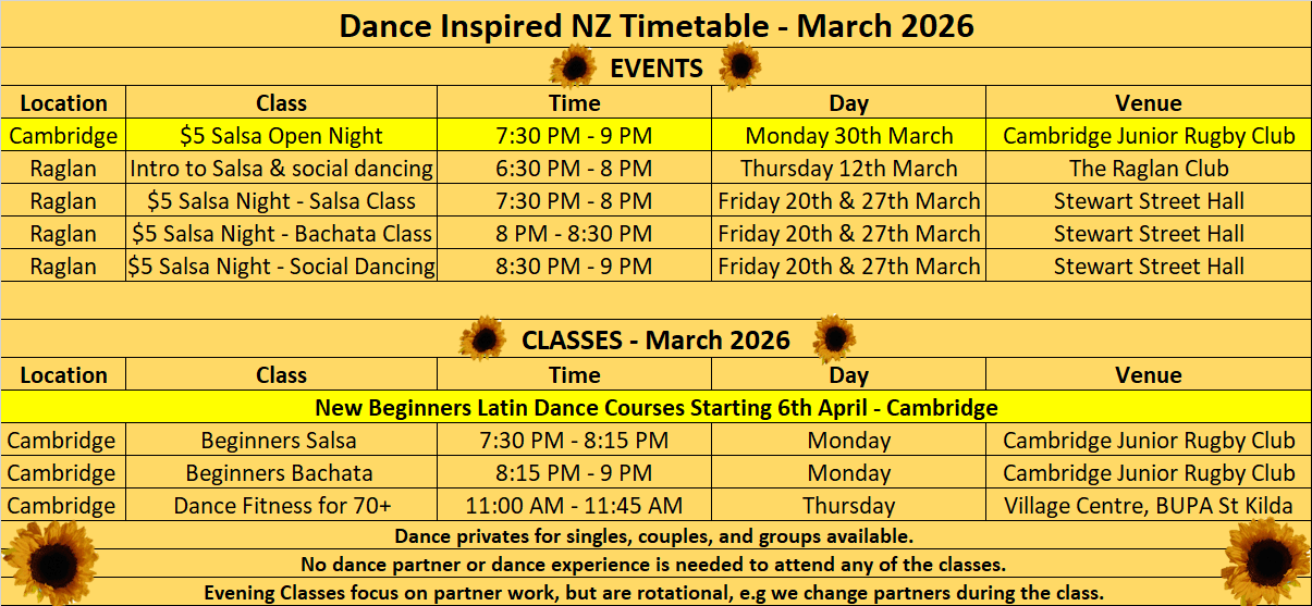 This section is updated to show upcoming events run by, or supported by Dance Inspired NZ.