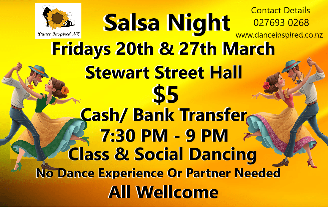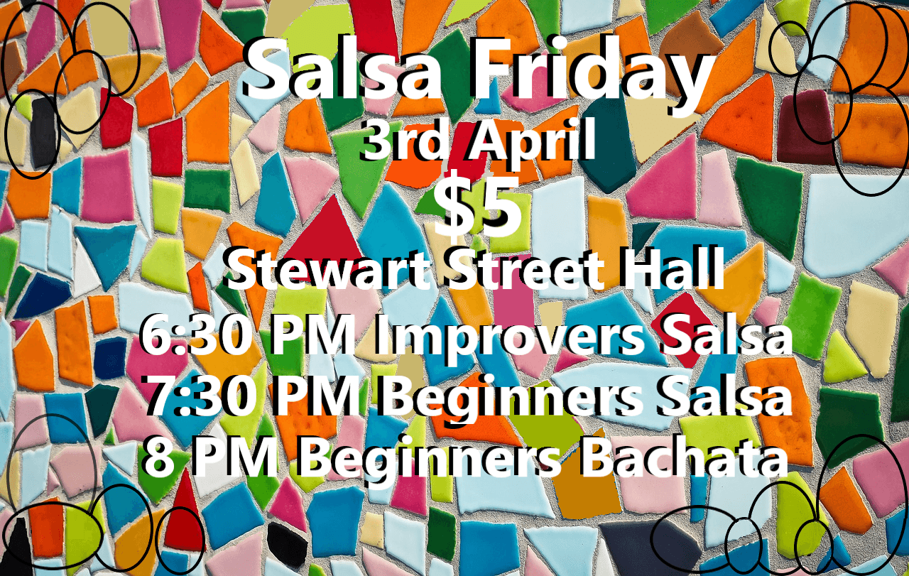 Join us on Fridays, 20th & 27th March at the Stewart Street Hall next to the Growers Market, and get a taste of Latin Dance!